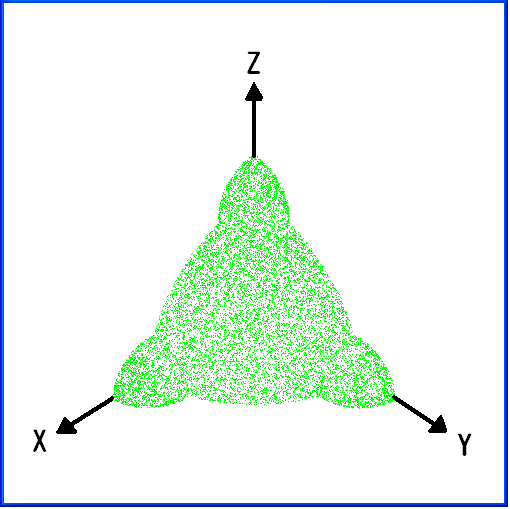 図1の形状は、原点を中心に大きい球を置き、x、y、z軸がそれぞれ大きい球と交わる点を