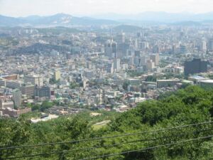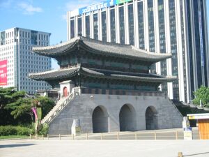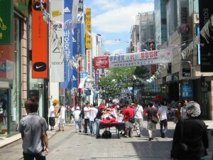 ソウルまでは1時間20分ぐらいのフライトであっというまに着いた。新しくできた空港は大きかった。空港からバスで1時間でソウル市庁舎前に着いた。あいにく天気は良くなく少し雨が降っていた。バスを降りてホテルを探しに行った。どこにホテルがあるかなかなか探せず、さっそく韓国人に聞いてみた。英語で。通じないけど、地図とここのホテル行きたいんやって言ってみた。その人は仕事中!?にもかかわらず、わざわざホテルに自分の携帯電話から電話してくれて、しかもホテルまで一緒に歩いて案内してくれた。雨降ってるのにだよー。いきなり親切な人の出会って感動!韓国人ってなんていい人なんやろって。その人のおかげで無事にホテルにチェックインできた。ちゃんとカムサハムニダってお礼を言いました。 ホテルに着いてひと休みした後、明洞地区を観光した。