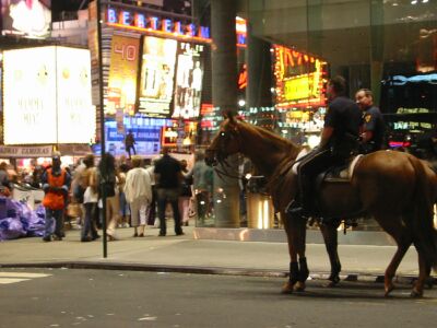 ニューヨークの警察官です。まじで馬に乗ってた。 馬に乗ってる警察官を見るのはロンドン以来。 主に夜はタイムズスクエア周辺にいた。観光客だらけ だし、警察官も何人もいたので特に危険を感じることは なかった。