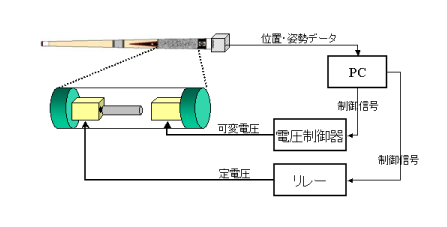 In recent years, the technology of virtual reality has spread widely, and recearch of Mixed Reality technology which involves the overlay of a computer-generated virtual world over a real world base has been developing briskly. However the research on the force display which bears an important role for bringing an actual feeling to a virtual object has just been attached to the start. The authors propose the device which generates reactive force of the direction of a certain axis, and describe a construction of