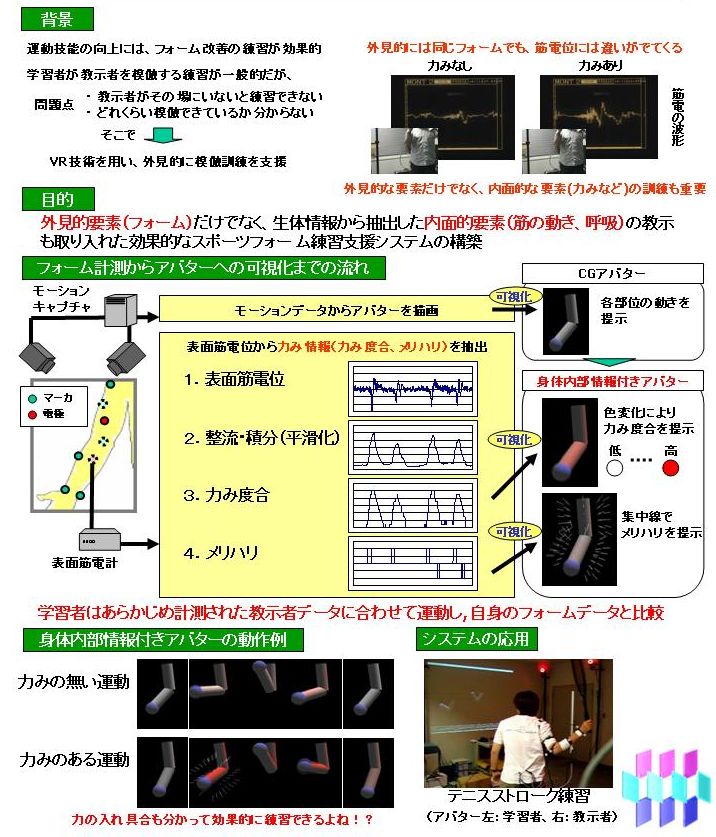 "スポーツフォーム練習支援のための生体情報可視化",