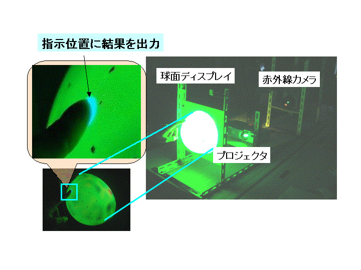 球面ディスプレイの背面に配置したプロジェクタと赤外線カメラからオブジェクトを