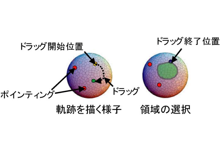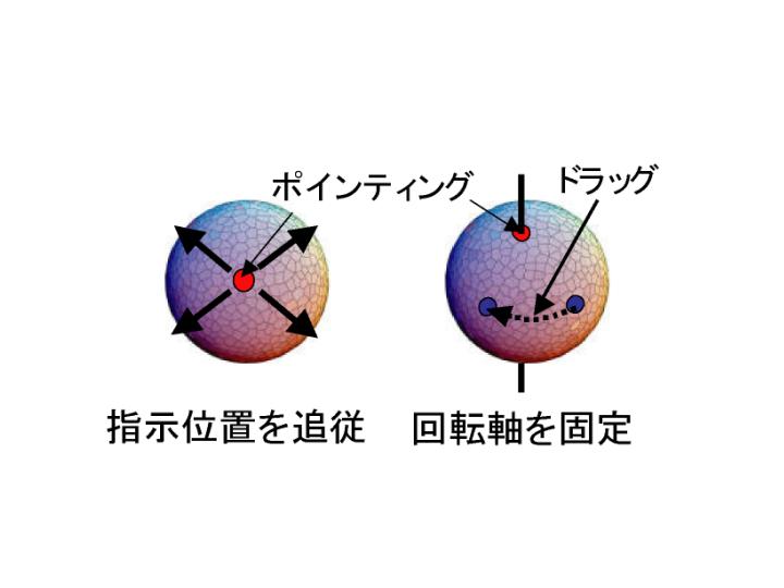 グやドラッグといった操作を認識する.同時に,それぞれの操作を組み合わせ,球面