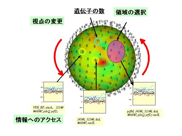 特に、図1のような球面状に可視化されたデータに関しては、分析の際にこれらの操作が