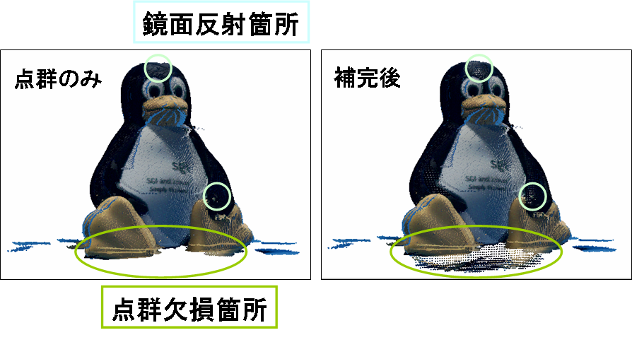 CGとして再現する際に点群の欠損による違和感が生じる。