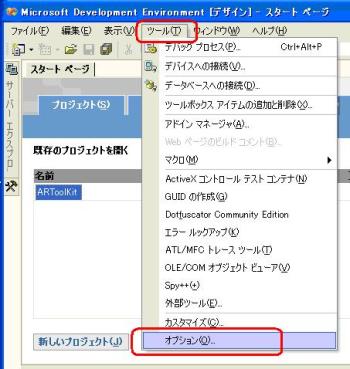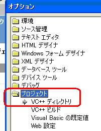 「ツール(T)」→「オプション(O)」→「プロジェクト」→「VC++ディレクトリ」を選択します.