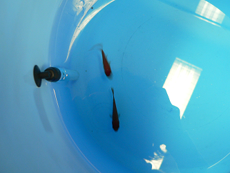 大きいほうの2匹も同じく薬浴してるんだけど、こっちは元気になってきて、今日はなんとえさを食べました!!!