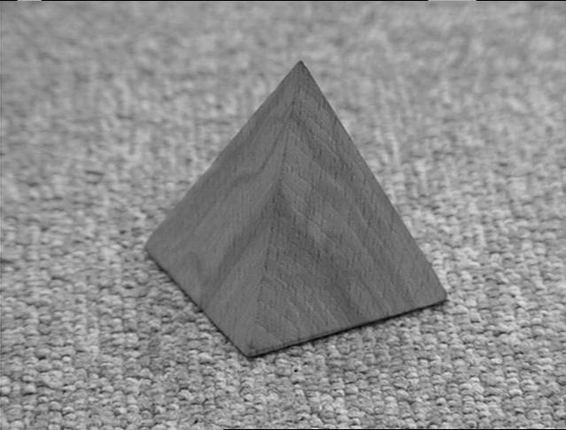 対象物体として以下の四角錐の形状をした木製の物体を用いた。