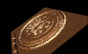 | 遺跡から出土した品物は、長年土中に埋もれているために腐食・破損があります。これらには保存処理が必要です。この処理において形状データを必要とする場合があります。また、出土した状況(土がついたままの状態)を必要とする場合もあります。これらのデータの保存のために実測図・写真・拓本等を従来使用してきました。しかし、最も正確なデータとなる実測図については、作成に非常に時間がかかります。このデータ取得にデジタル計測を用いれば、時間はある程度決まり、また計算機で利用することが容易となります。 |