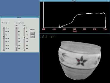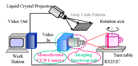 イメージ分光器を用いての三次元形状とスペクトル分布の計測を行った.