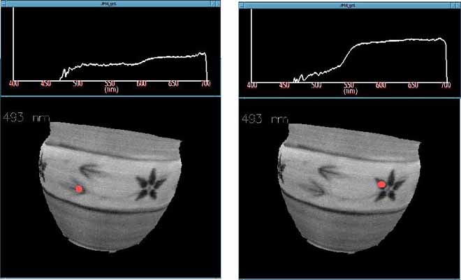 左のスクロールバーで波長を変化させることで,その波長での物体の反射強度を輝度値として表現できる.