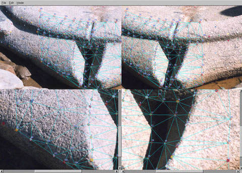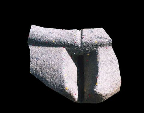 The reconstructed model of Kamegata-Ishi is rendered by Onyx2 and we can see the stereo image with stereo glasses from any point of view.