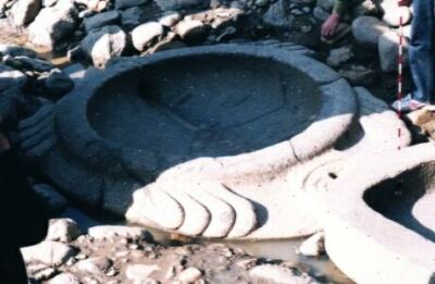 The structure of Kamegata-Ishi indicates that the stone can flush and store water so we can guess that this relic is used for some kind of rites with water. In the Asuka era, many peculiar stone objects are constructed (such as Kameishi, Sakafune-Ishi etc.) and the relationship between them(including Kamegata-Ishi) has been discussing for a long time. Therefore, the stone is expected to provide new clues to elucidate the culture of Asuka era.
